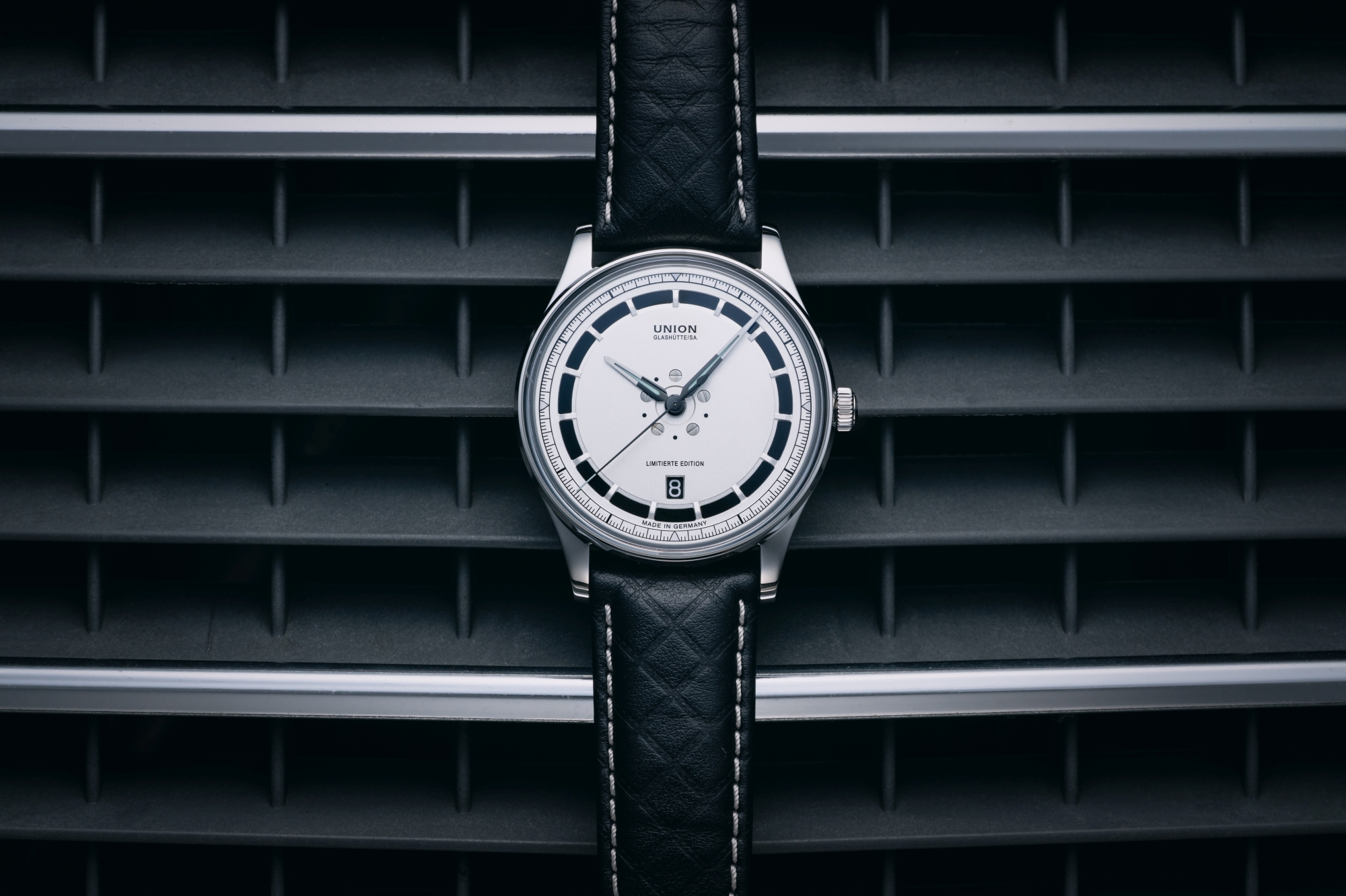 Uvnitř hodinek pracuje výkonný automat UNG-07.S1, zelenkavá luminiscence Super-LumiNova rozsvítí ručky i v garáži bez oken, a řemínek z černé telecí kůže s kosočtverečným reliéfem? Ten se dotýká zápěstí stejně elegantně, jako vás kdysi objímalo kožené sedadlo starého kupé.