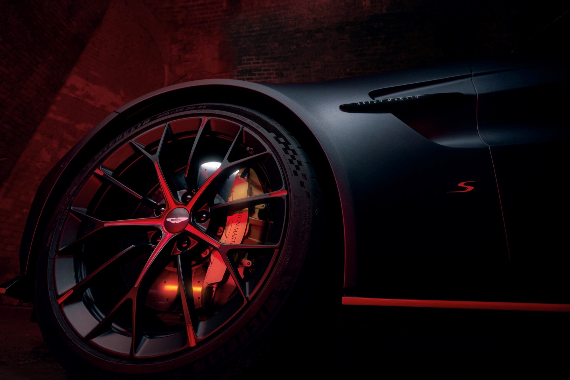 Model Vantage S lze vybavit specifickými 21″ koly s paprsky ve tvaru „Y“ v saténově černé barvě a s červeným grafickým detailem – typickým pro varianty „S“. Elegantní kontrast vytvářejí brzdové třmeny v bronzové barvě.
