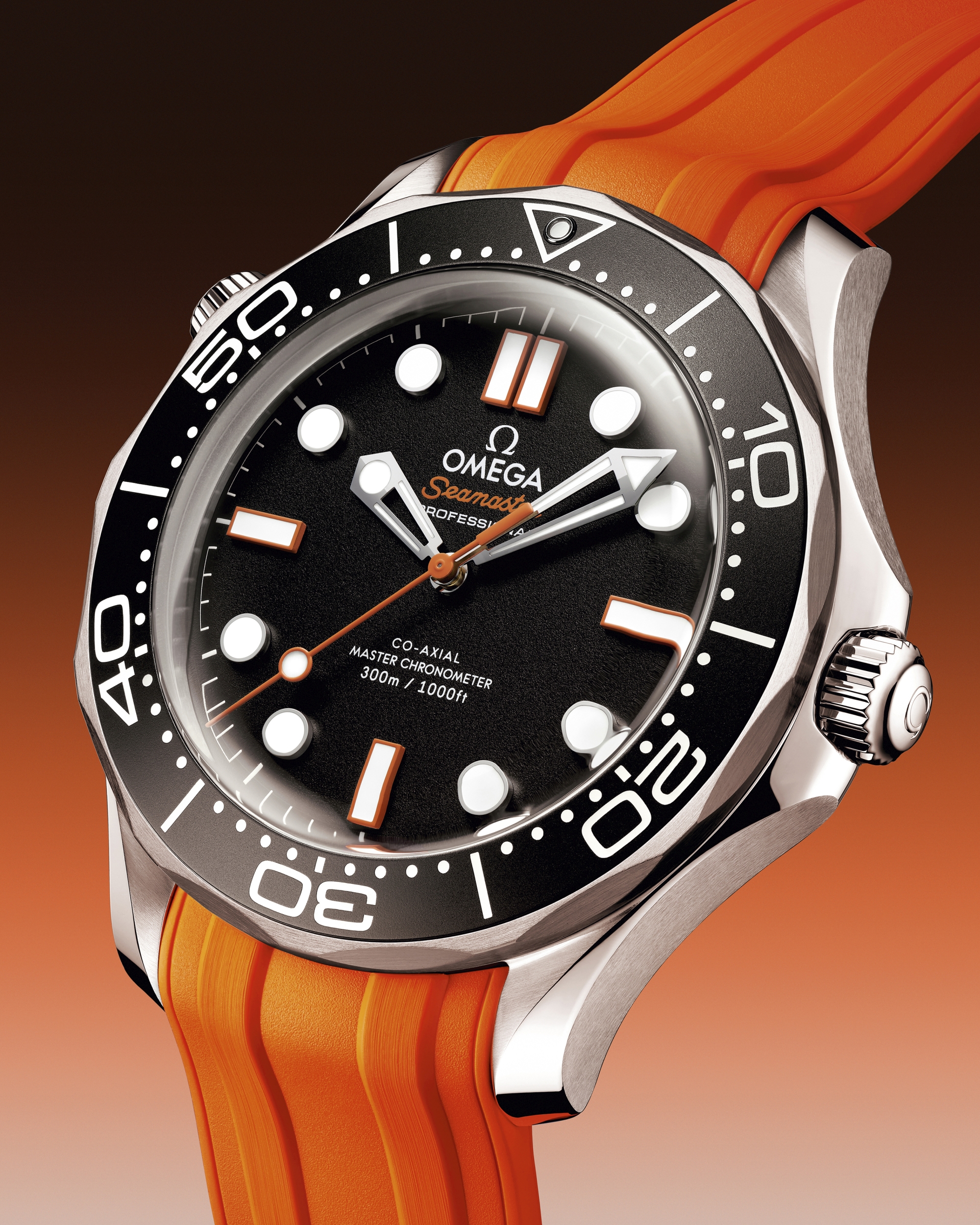 Celá kolekce Seamaster Diver 300M nedávno prošla zásadní revizí, která přinesla modernizované náramky, klenuté safírové sklíčko a lunety z eloxovaného hliníku. Novinky na tuto linii navazují a přidávají vlastní identitu díky kontrastnímu spojení černé a oranžové.