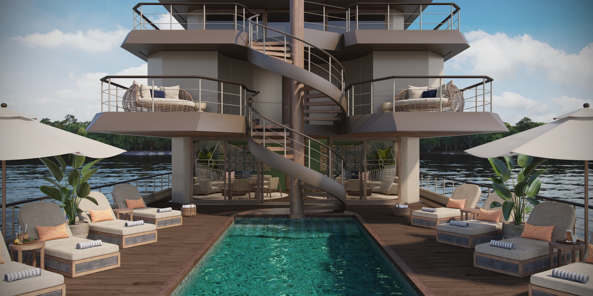 Prostorný design jachty andBeyond Amazon Explorer, inspirovaný formátem Beach Clubu mnoha zaoceánských jachet, umožní také přidání River Retreat, odpočinkové zóny, která zahrnuje palubu s bazénkem, kde mohou cestovatelé relaxovat a kochat se nádhernou scenérií.