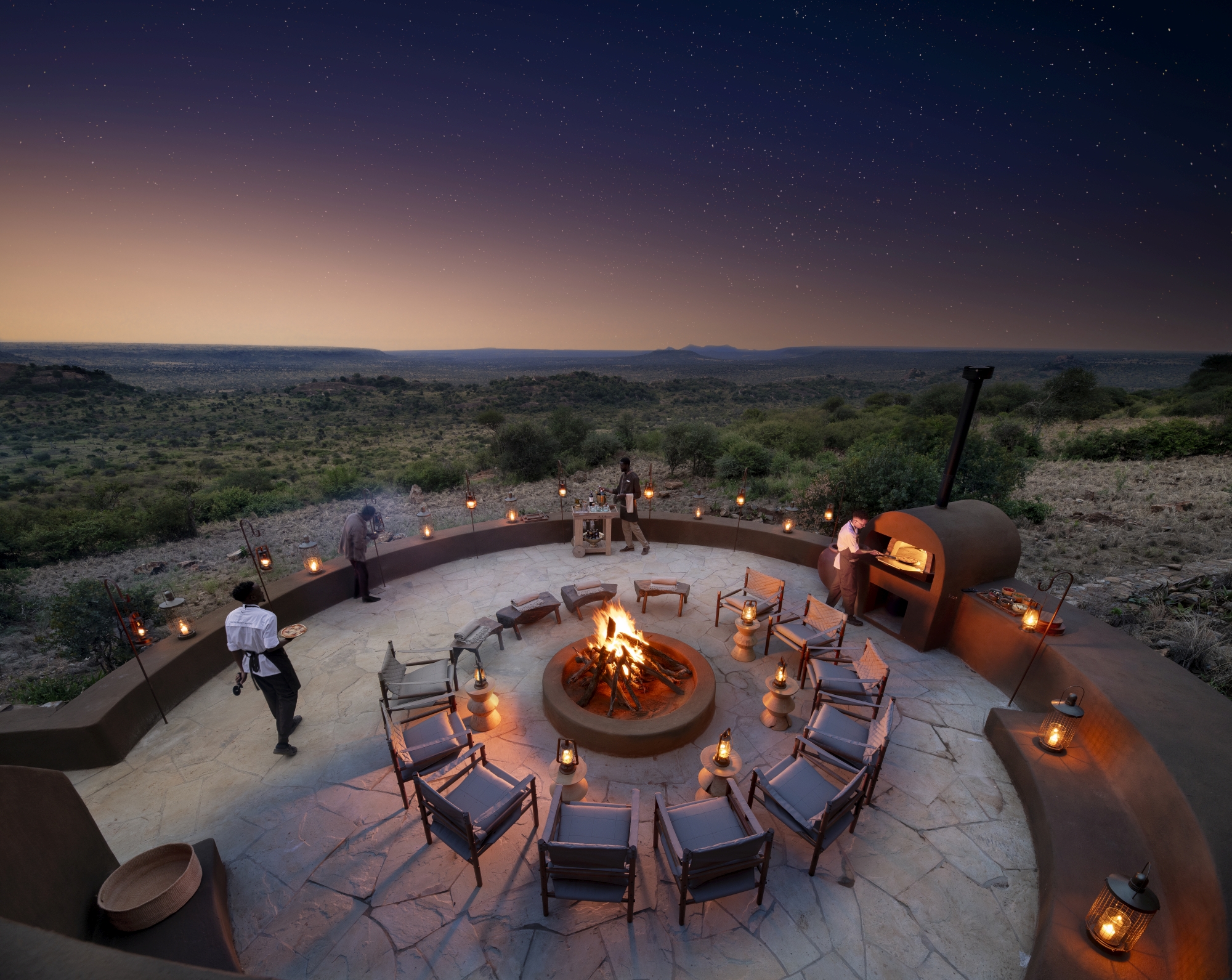 Všech 14 apartmá, včetně jednoho rodinného, nabízí soukromý bazén, nekonečné výhledy a vrstvené interiéry odrážející kulturní bohatství Keni, od obložení inspirovaného divokými psy přes korálkovou výzdobu Samburu až po bronzové detaily.
