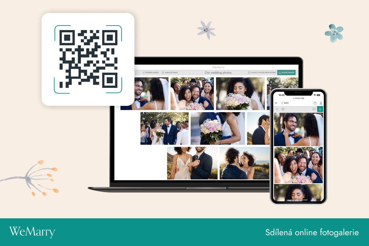 ● Online fotogalerie pro sdílení vzpomínek, do které mohou svatební hosté v průběhu svatby nahrávat fotky pomocí QR kódu a do které následně novomanželé nasdílí profesionální snímky od fotografa.