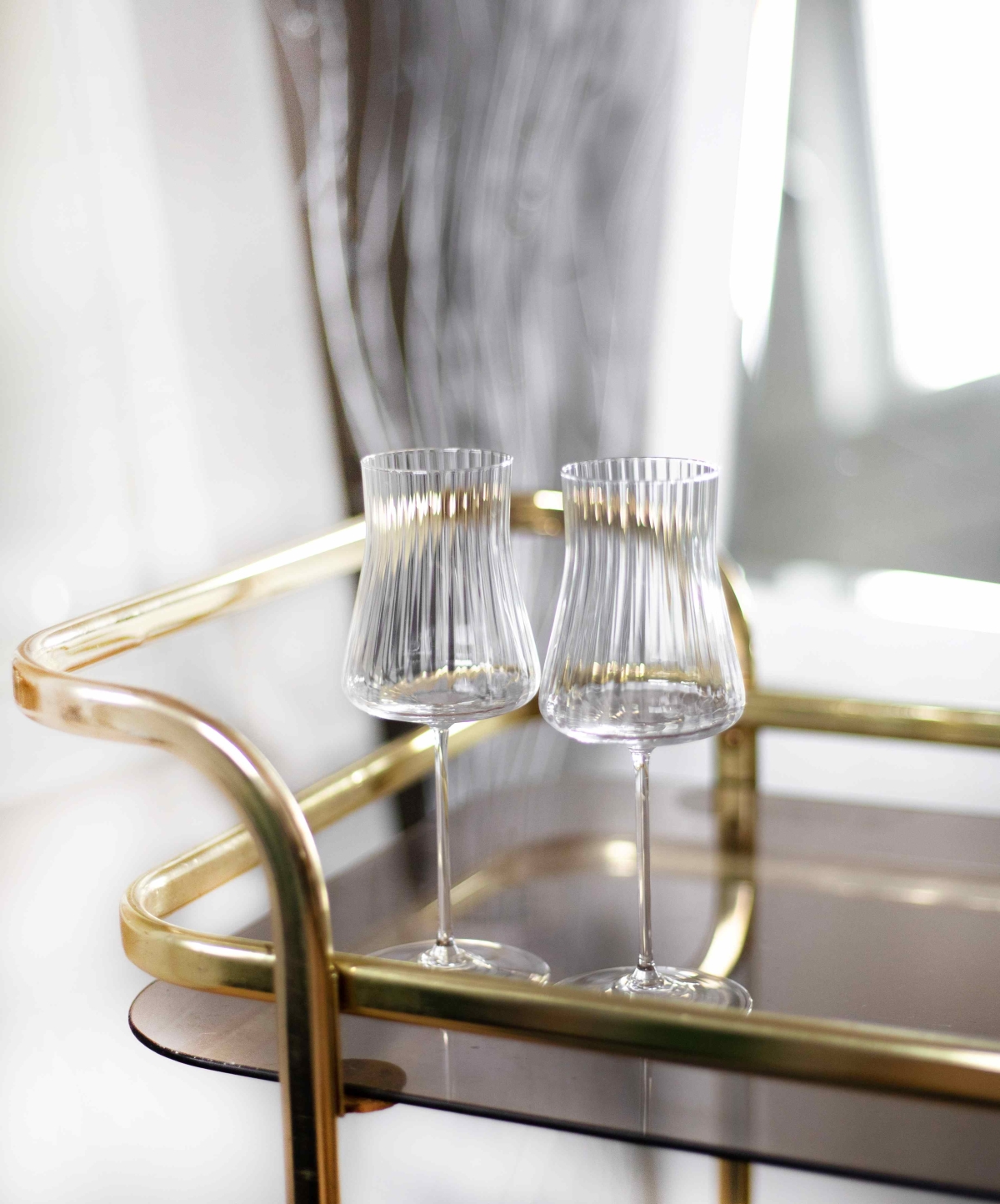 Dolce Vita zahrnuje vše od subtilních fléten na šampaňské, přes sklenky na Pinot Noir, cognac či prosecco, až po sklenice na whiskey a nadčasové universály – vše signované logem autora jako pečetí autenticity a řemeslné preciznosti.
