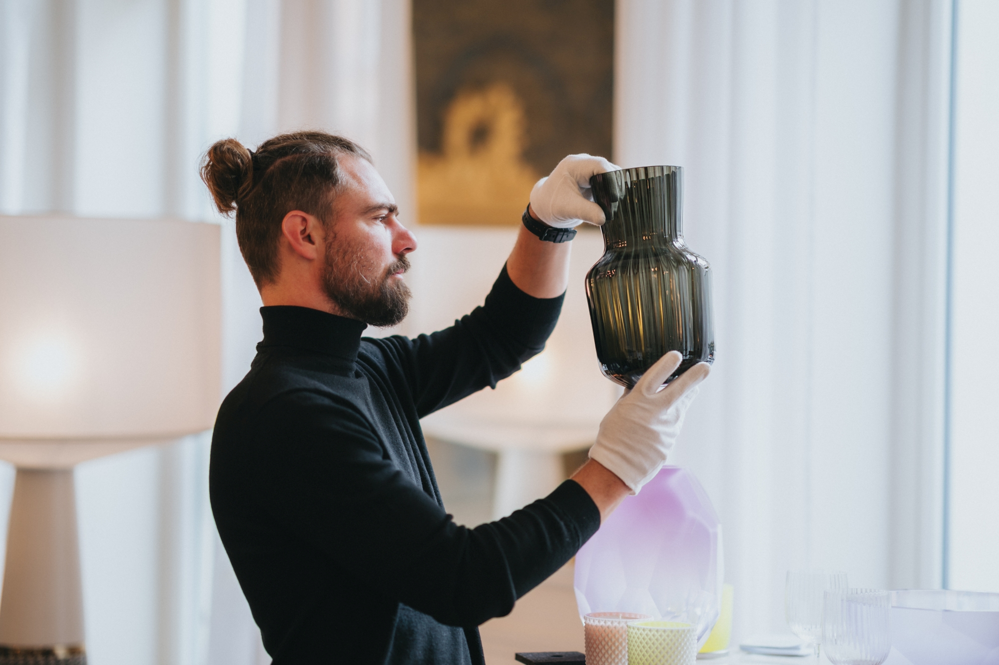 A právě víno je v této nápojové kolekci hlavním aktérem. Dekantéry, karafy, sklenice – každá z nich je tichým svědkem setkání. Každá z nich má svůj tvar, svou náladu, svou roli v příběhu stolu. „Kolekce je poctou českému řemeslu, ručně foukaná do dřevěných forem a zdobené výraznou vertikální optikou, která tvarům dodává eleganci a jedinečný styl,“ upřesňuje Lukáš Jabůrek.