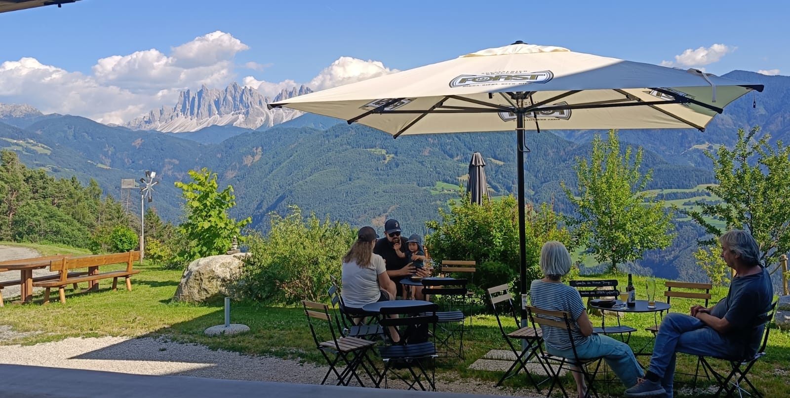 O kus dál na sever už na dohled Brixenu najdete ve Feldthurnsu/Velturnu farmu Dietrichhof. Také tady se zabývají hlavně chovem hospodářských zvířat, ale nabízejí ubytování v originálních „kobkách“ v přestavěné stodole. A protože leží ve výšce 1200 metrů nad mořem přímo na turistické stezce, otevřeli si letos v létě i zahradní kavárnu. Otevřeno mají denně od 14 do 19 hodin, stavte se. Energická paní domu Szilvia Rauterová pochází z Maďarska a svůj životní elán čerpá hlavně ze čtyř základních přírodních elementů.