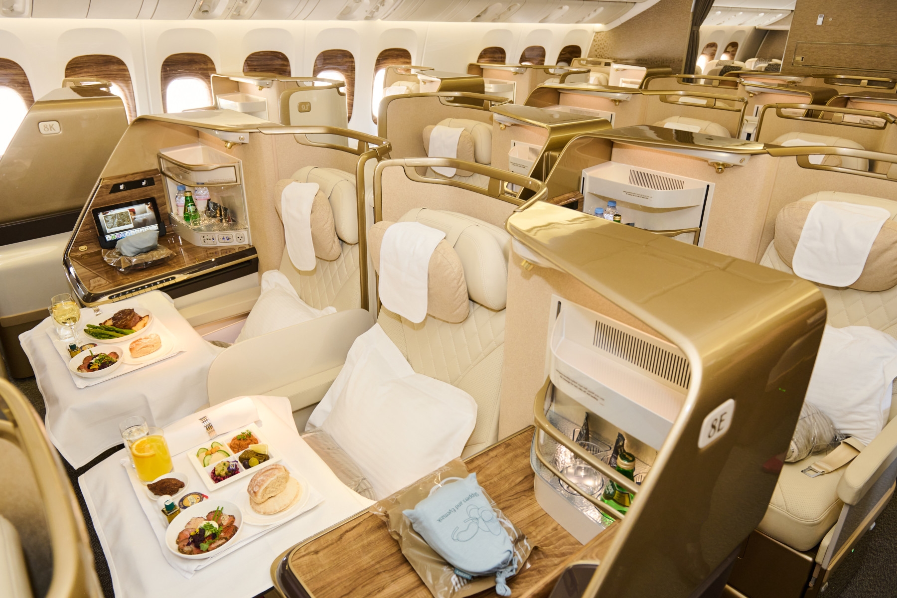Modernizovaný Boeing 777 společnosti Emirates se čtyřmi třídami nabízí vylepšené interiéry s novými designovými prvky a speciálně navrženými motivy stromu Ghaf včetně dřevěných dekorů ve všech kabinách. Každé letadlo má 260 sedadel nejnovější generace v Economy Class, 24 sedadel Premium Economy, 38 sedadel Business Class v uspořádání 1-2-1 a osm uzavřených suit ve First Class.