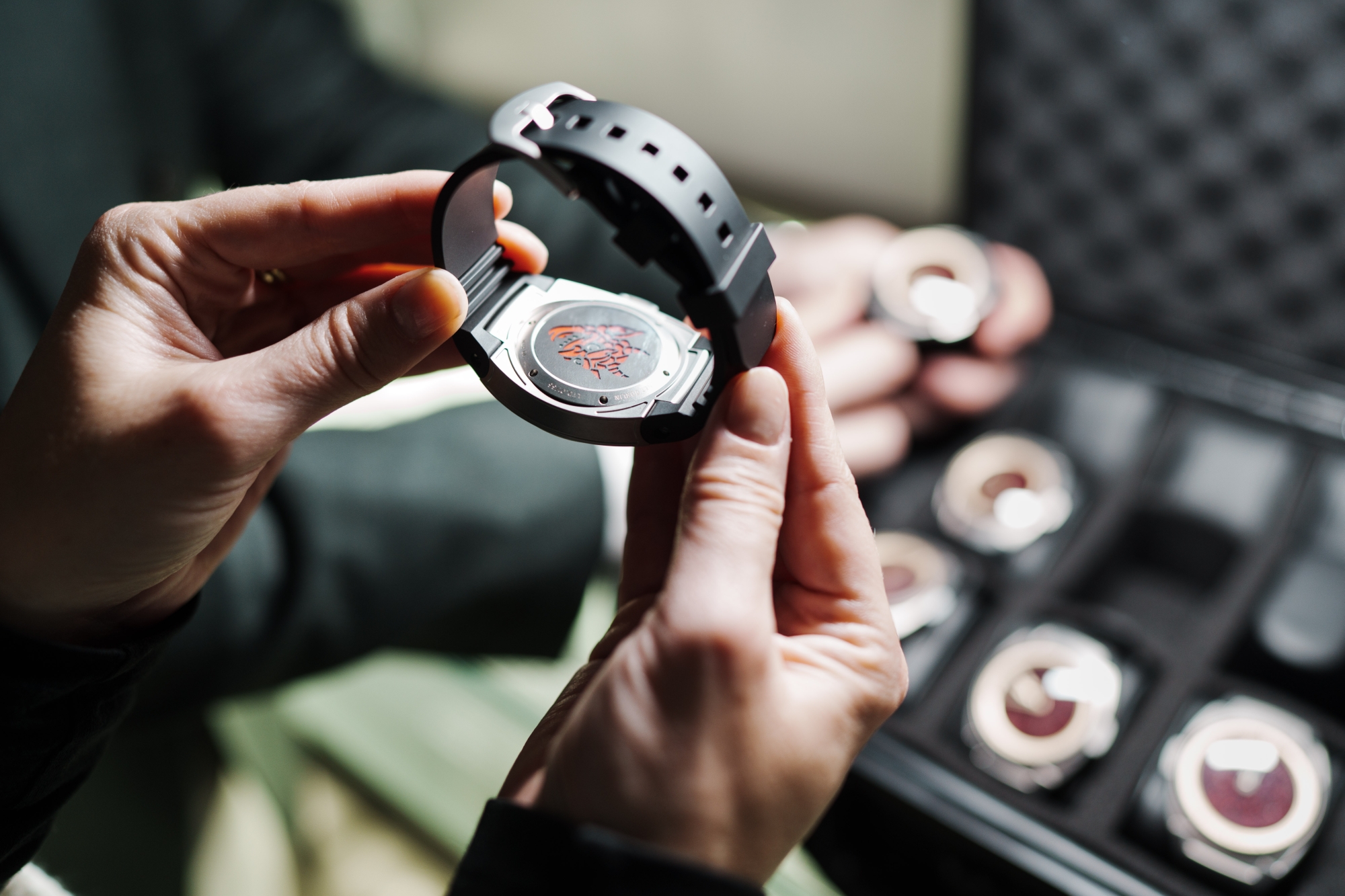 Ve spolupráci s družstvem Granát Turnov proměnila značka drobné kamínky o průměru menším než milimetr v rudý kompozit, jehož lesk připomíná tekoucí lávu i srdce české země. Na dýnku ocelového modelu z řady Arc II se vyjímá postava goblina – symbolická bytost, která v příběhu značky chrání tajemství povrchové a udržitelné těžby českého granátu.