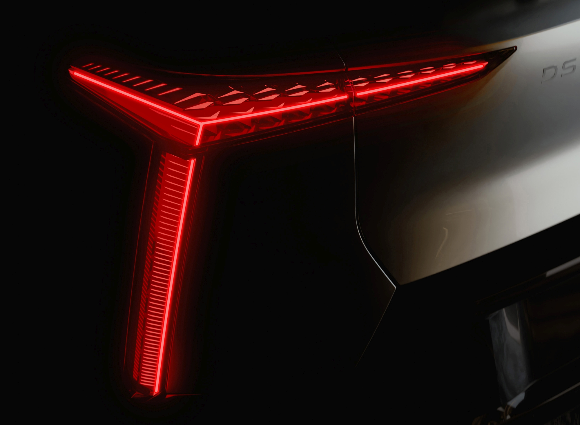 Svislá část světlometů DS LIGHTBLADE vzadu zajišťuje dokonalou vizuální konzistenci s přídí a posiluje high-tech kořeny vozu DS N°8. Každá část karoserie byla navržena tak, aby přispívala k její aerodynamické účinnosti (0,24 Cx a SCx 0,63 dm2), což umožňuje dosáhnout hodnot, které patří mezi nejlepší na trhu.