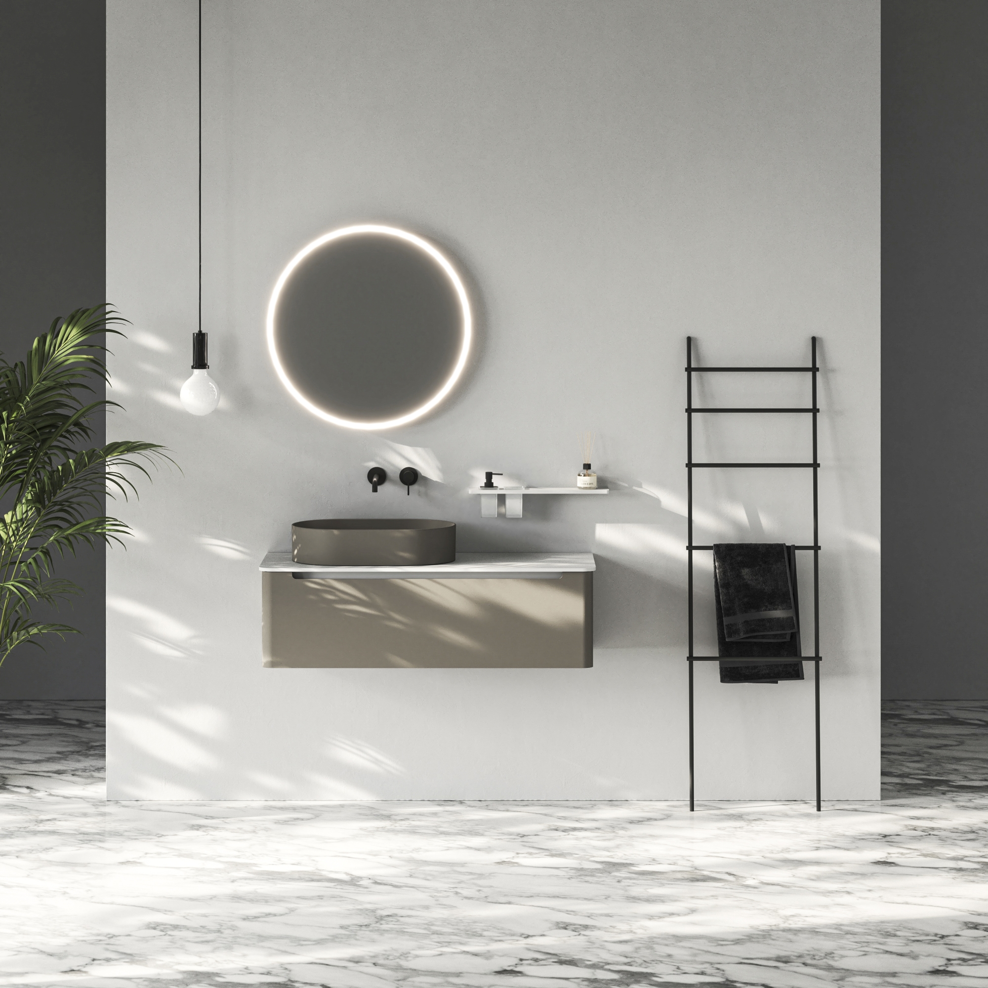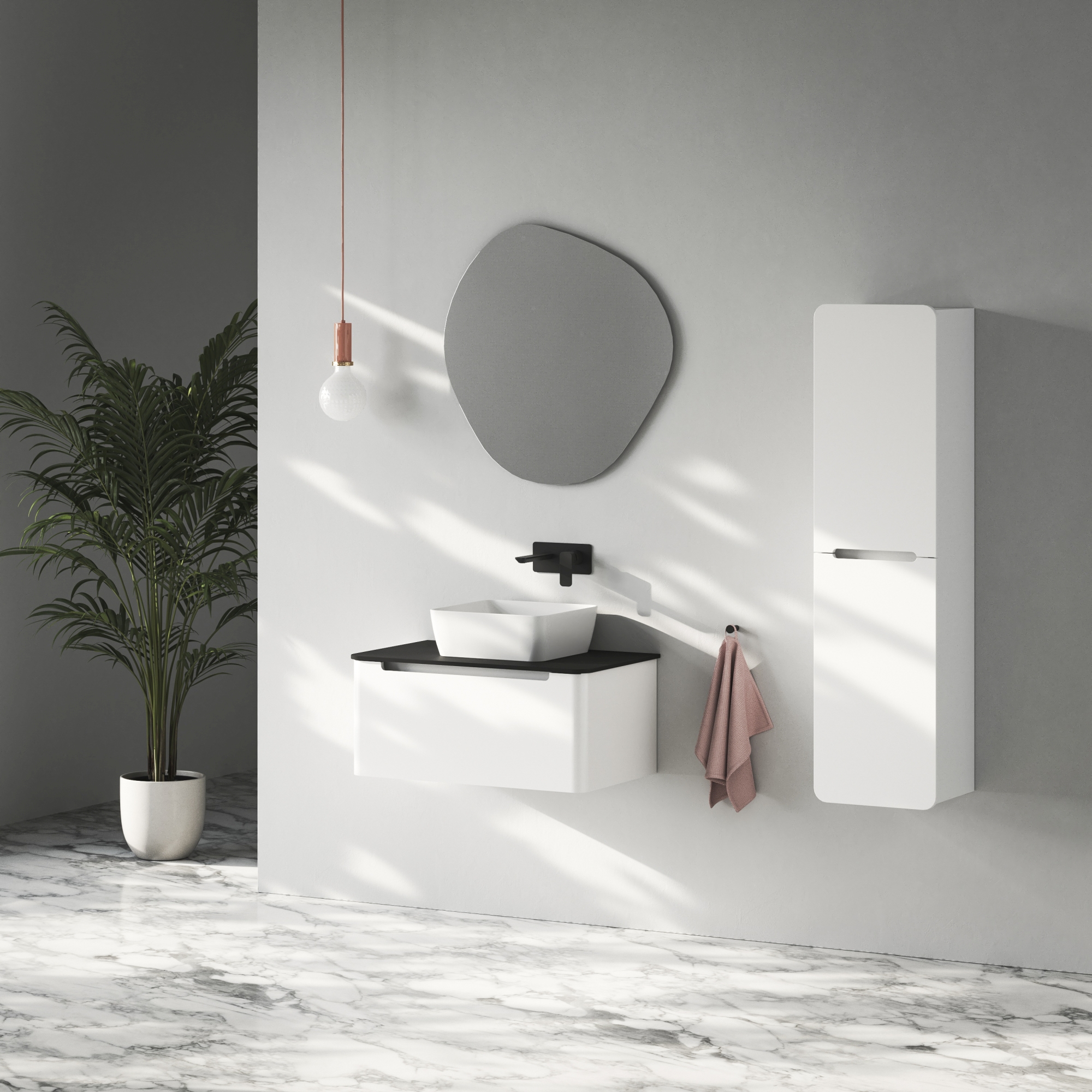 Nábytek je určen pro umyvadla na postavení, což přináší větší volnost při návrhu prostoru. Bezúchytkové zásuvky s tichým dovíráním zajišťují plynulé otevírání i čistý vzhled, díky kterému vynikne design celé koupelny.