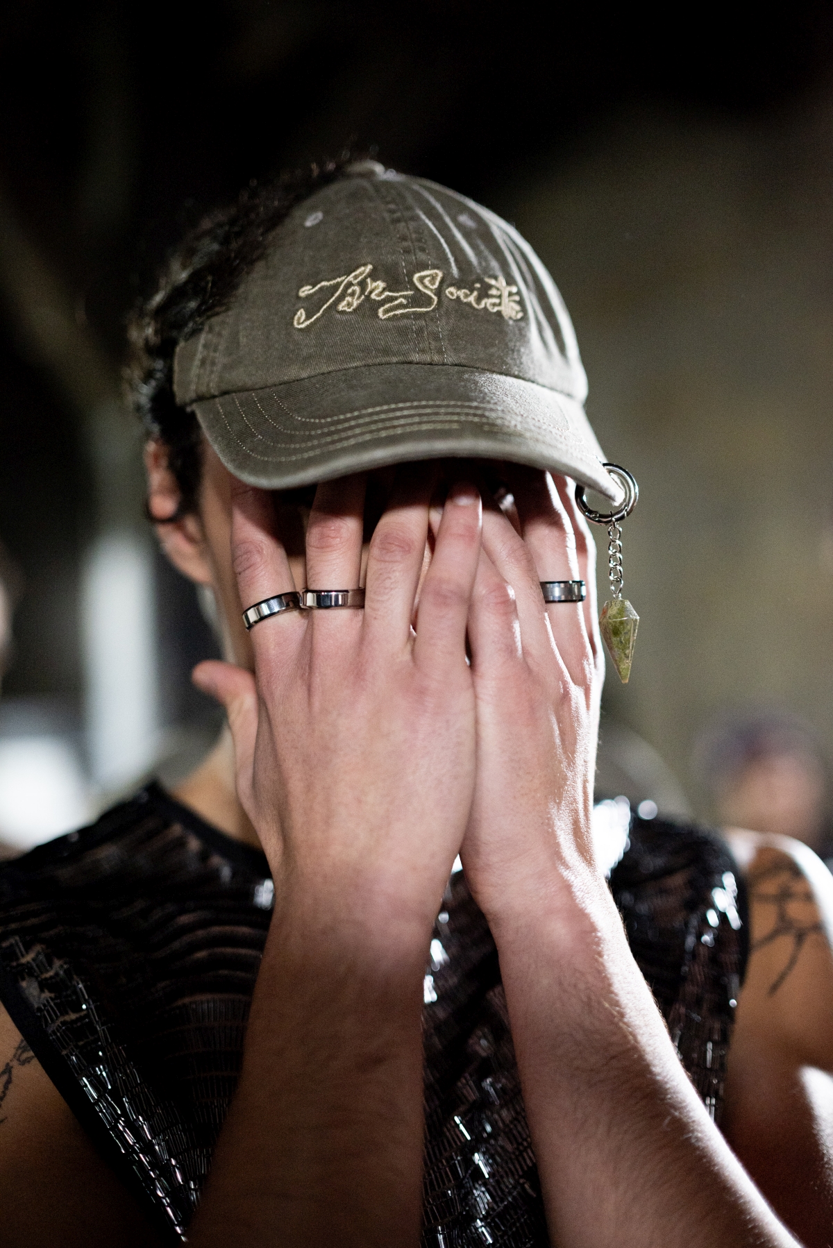 Součástí vybraných looků byly pánské šperky Aztorin od APART. Při stylingu se sáhlo po masivních prstenech a náhrdelnících z ušlechtilé oceli, které dokonale ladily s celkovou estetikou kolekce. Na mole se objevily různé kombinace prstenů v odstínech stříbrné, kovové, ocelové a černé barvy, doplněné o náhrdelníky z achátu, tygřího oka i modely s prvky ušlechtilé oceli. Jejich syrový, ale elegantní charakter dokonale vystihl filozofii celé přehlídky – kontrast mezi minulostí a přítomností, tradicí a moderní energií.