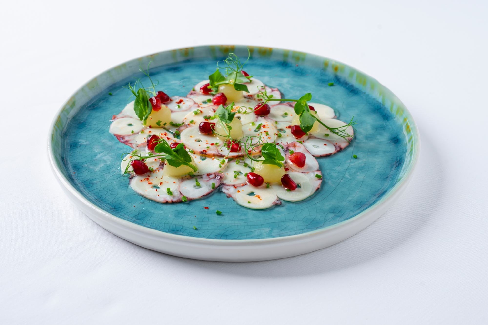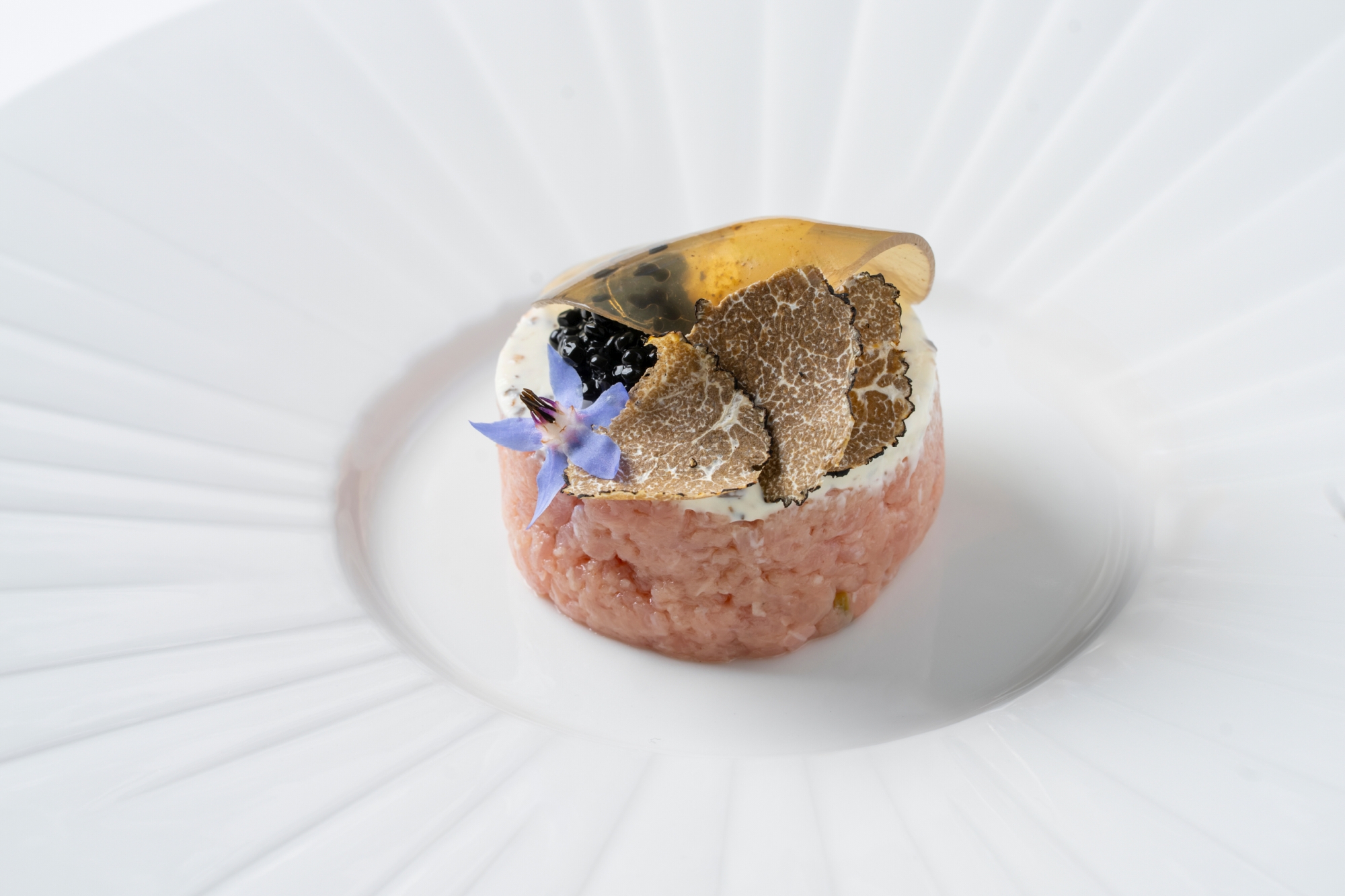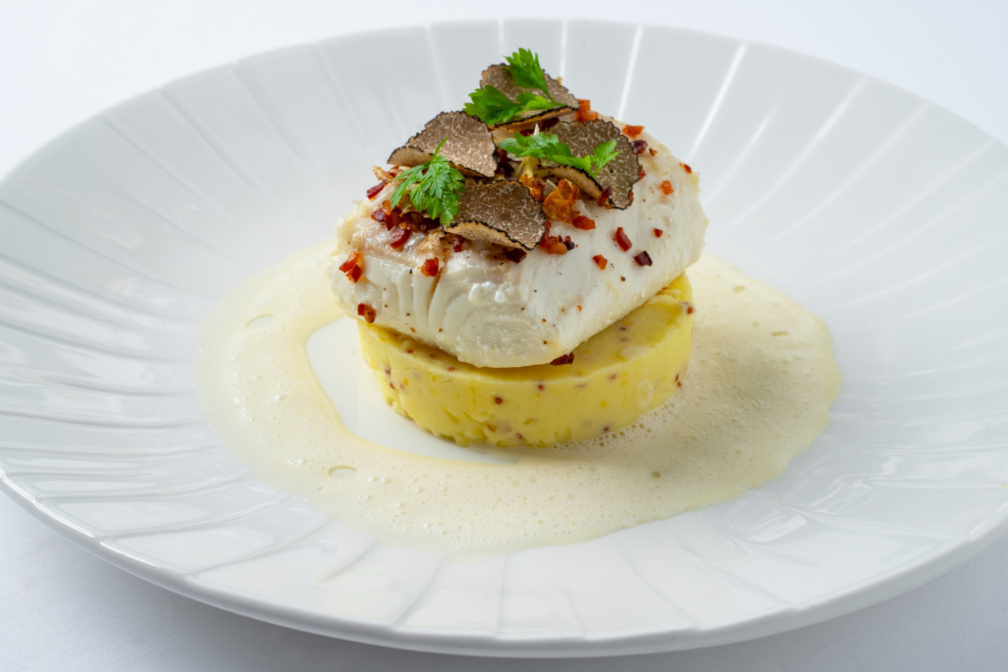 Štědrovečerní večeře naopak reprezentuje bohatství chutí z celého světa. Soustředí se především na ryby, jak se na Štědrý večer očekává. Na tříchodové menu vás naladí amuse bouche s bio kaviárem ze pstruha s citronovým crème fraîche a marinovanou ředkví. Následuje carpaccio z mušlí sv. Jakuba s italským černým zimním lanýžem, který je momentálně na vrcholu sezony. Hnědé máslo dodává jemným mušlím s výrazným lanýžem harmonii.