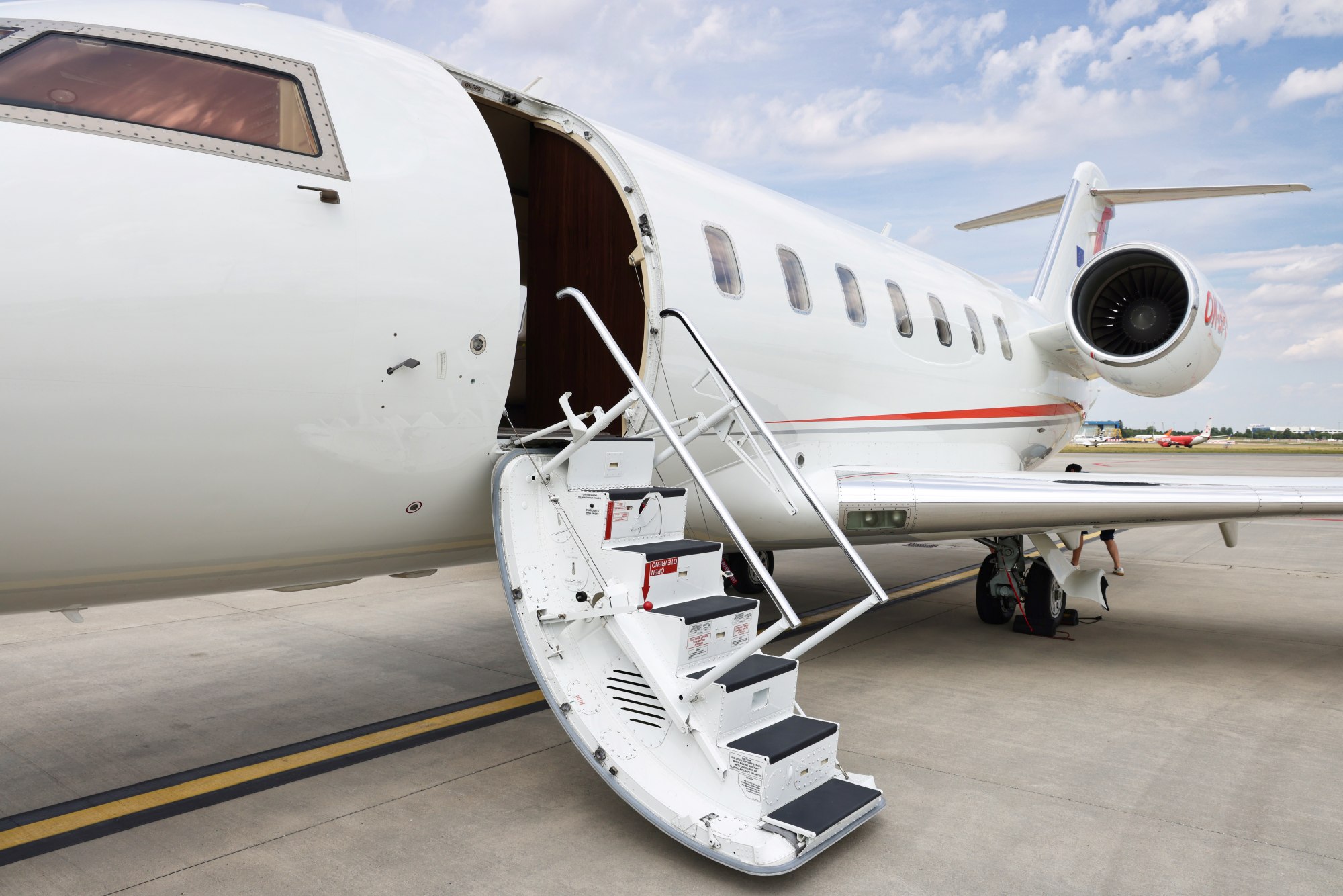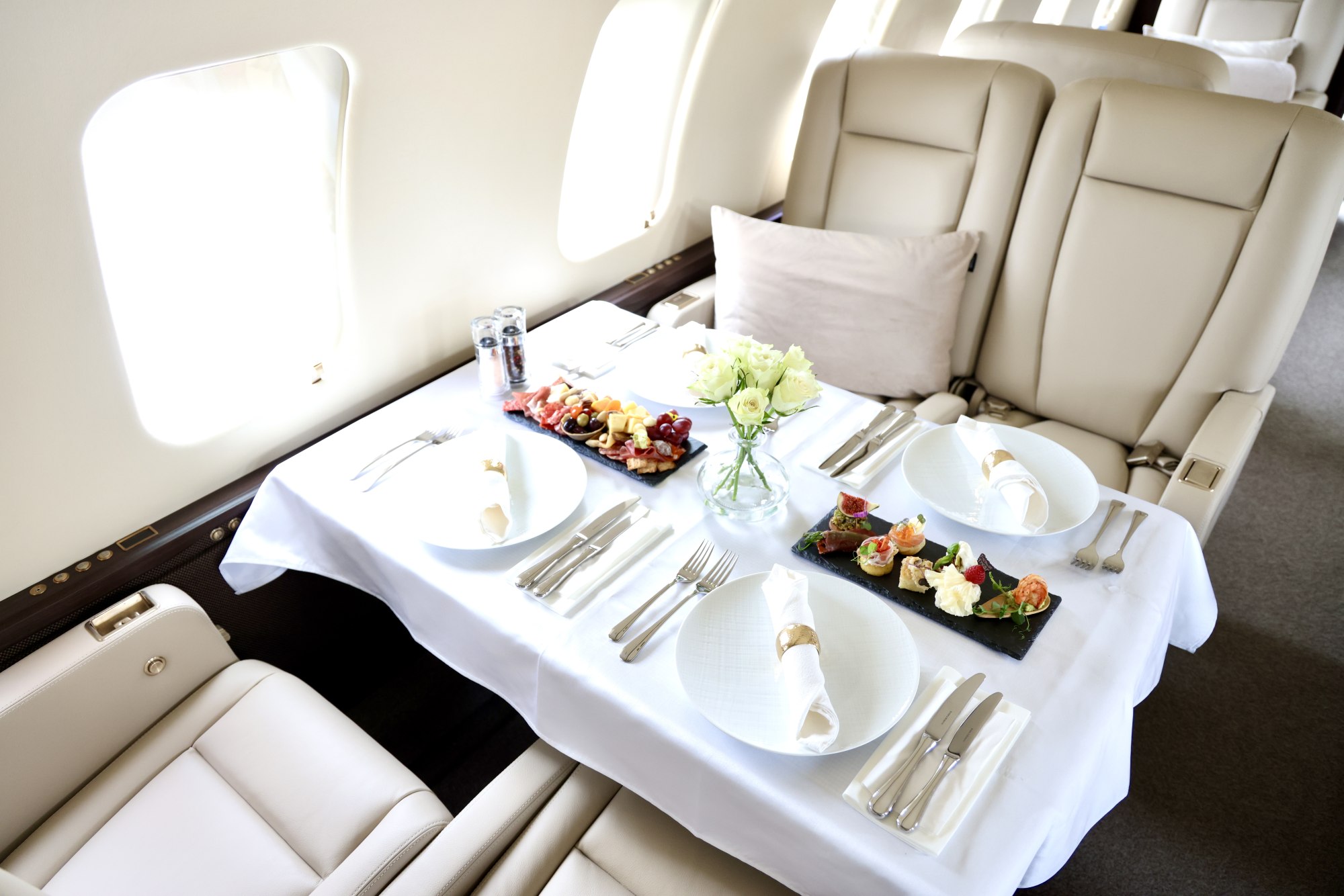 Kapitán mě přivítá a osobně doprovází k letadlu, kde už čeká vše, co jsem si přál. Při nástupu mi letuška nabídne napařený ubrousek na očištění rukou a sklenku šampaňského. Péče posádky je nenápadná a diskrétní, přizpůsobená mým potřebám, aby let probíhal hladce a pohodlně.