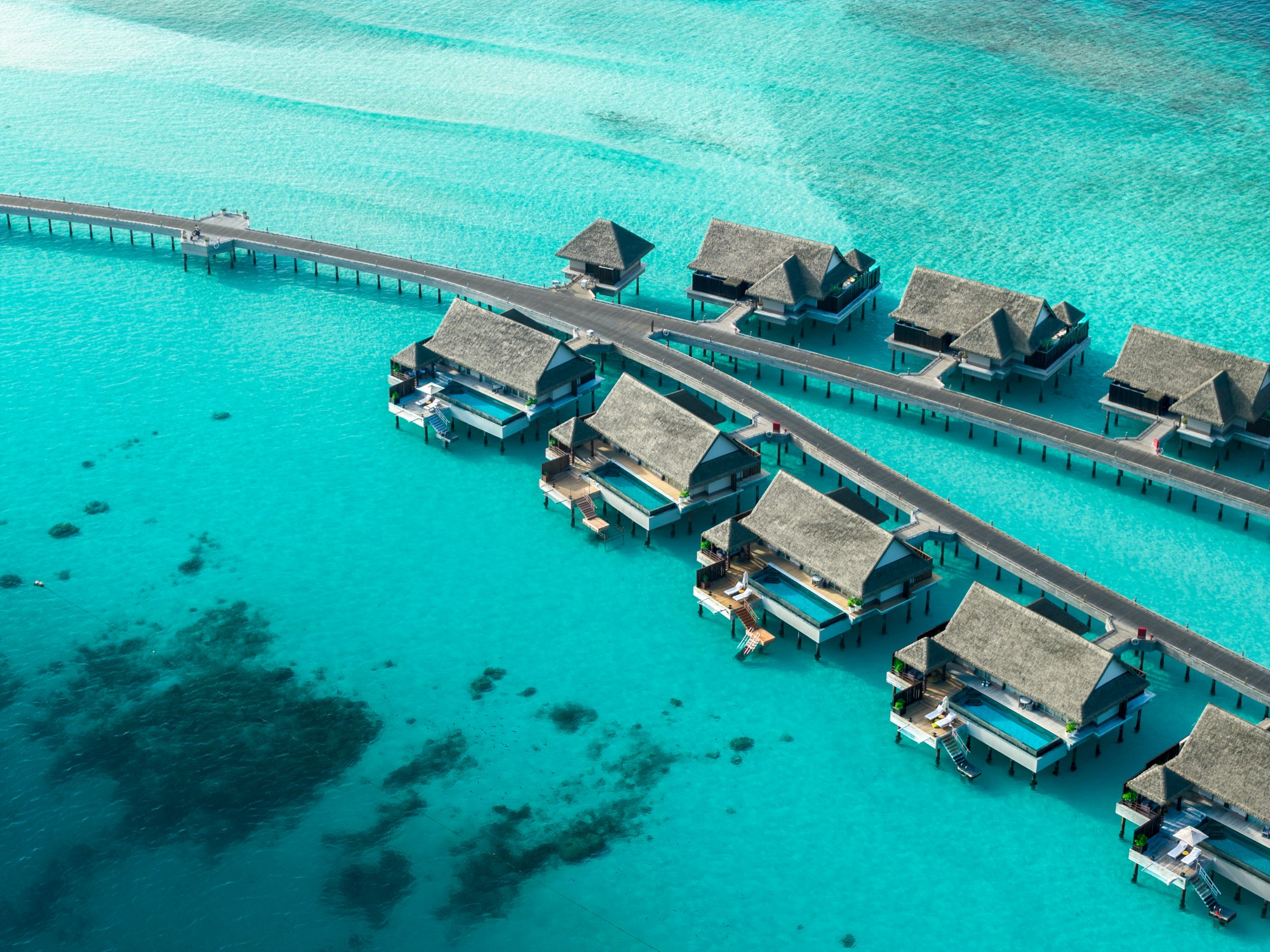 Vždyť nechybí ani privátní posilovna, ale přirozeně také sauna a posilovna. Sprchy jsou zde vyvedeny v norském zeleném mramoru, zatímco krémově bílý turecký kámen zdobí koupelnu. Vše je podřízeno detailu, a tak například nad pohodlnou postelí nechybí mozaika vyvedená ze dřeva z nasbíraných kokosových ořechů. Jelikož hotel Joali staví na konceptu imerzní integrace umění, nechybí jedno z 21 uměleckých děl, které vytvořila jihokorejská Soojin Kang, ve velkolepě pojatém obývacím pokoji.