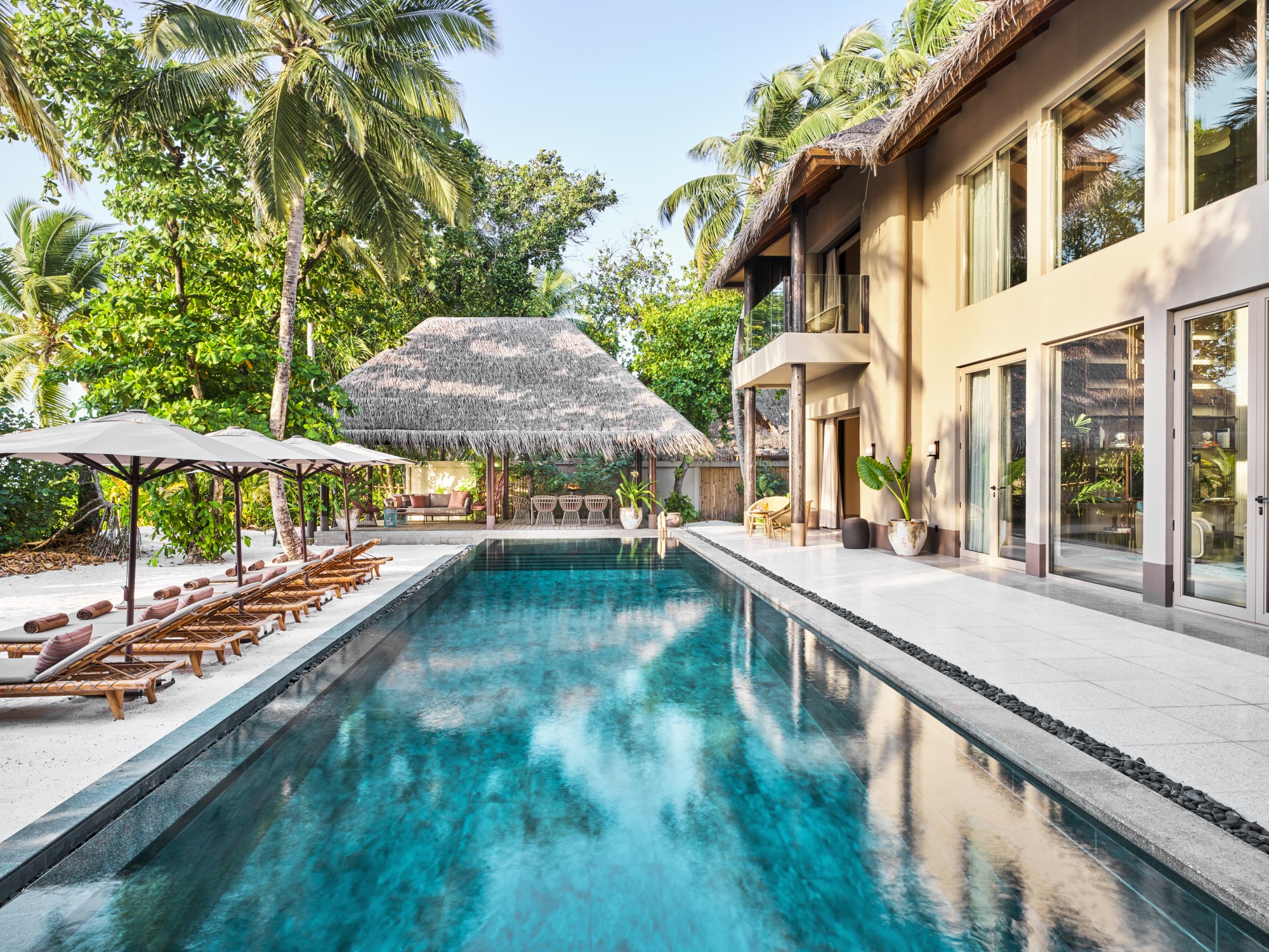 Každá ze 73 vil vznikla jako samostatný příběh, kde se umění, příroda a hra smyslů prolínají v harmonii. Vrchol zde však představuje pompézní Beach Residence se čtveřicí ložnic – největší a nejvelkolepější rezidence ostrova, jejíž cena byla stanovena na 475 000 Kč na noc. Dvoupodlažní útočiště navržené pro rodiny i přátele, kde se prostor nepočítá na metry, ale na zážitky, nabídne velkorysý infinity bazén s výhledem na Indický oceán, soukromou knihovnu s pracovnou, ale hlavně nepřetržitý servis s vlastním butlerem a samozřejmě také osobní buggy vytvářejí pocit absolutní svobody. Je to vila pro maximálně devět hostů, kde se slaví přítomný okamžik – velkolepě, tiše a bez kompromisů.