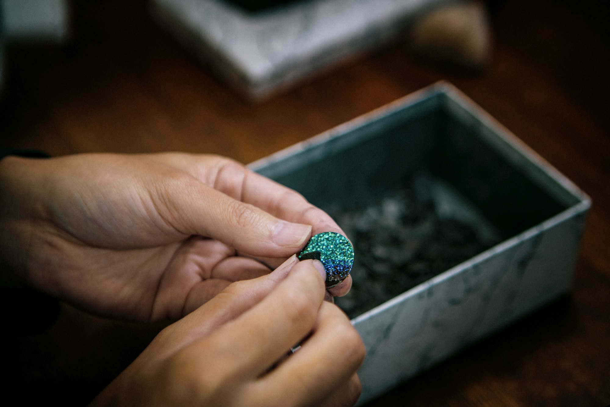 Dialog mezi oběma tvůrci se formoval kolem sdílené, moderní vize tradičního savoir-faire a vzájemné fascinace světlem. „Našli jsme nový způsob, jak vyprávět o světle prostřednictvím odrazů tisíců drobných fragmentů perleti,“ vysvětluje Fabrizio Buonamassa Stigliani. „Touto technikou nabízíme svěží pohled na světlo skrze barvu.“