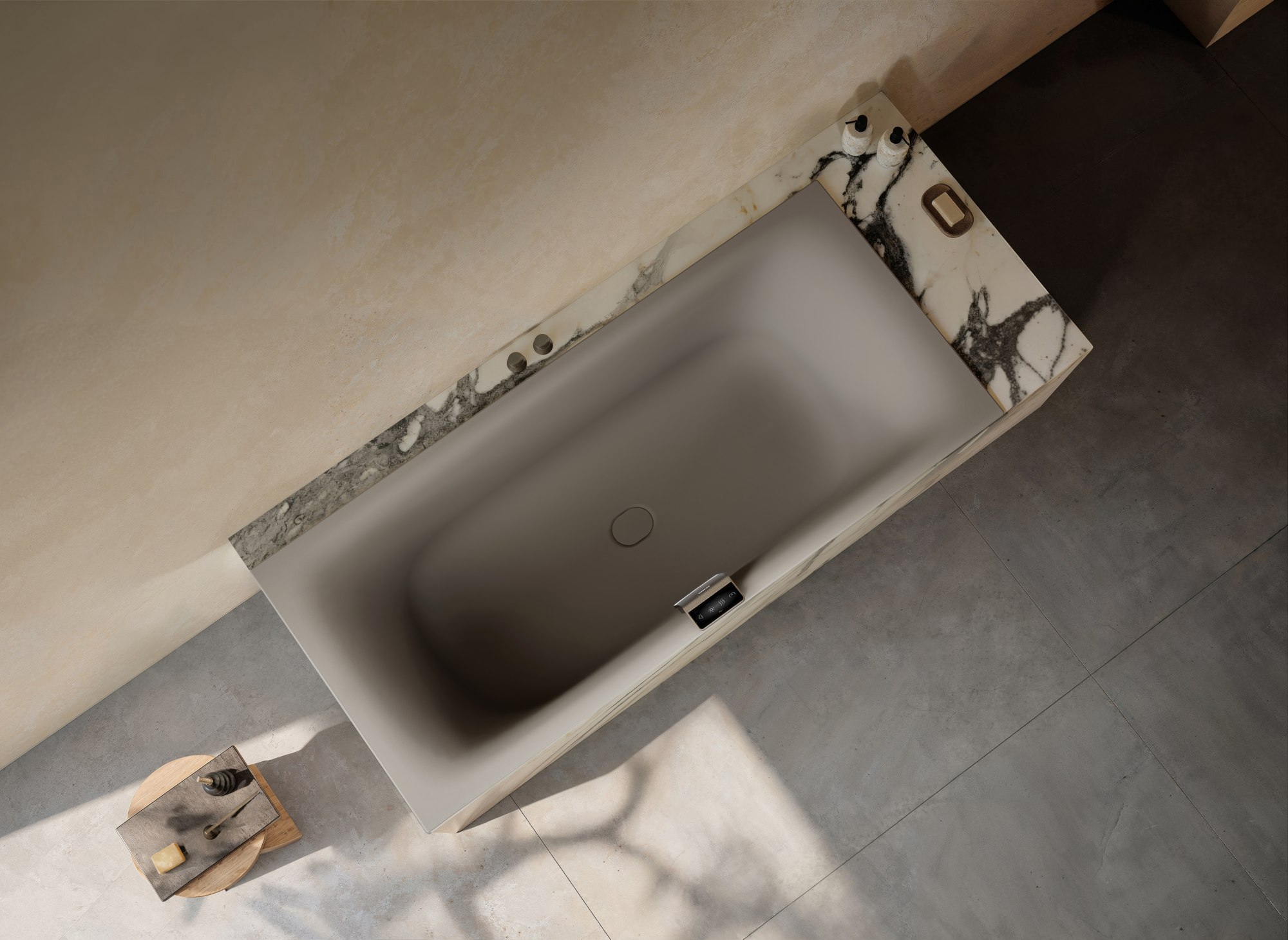 Moderní LCD displej s intuitivním plynulým nastavováním zobrazuje aktuální nastavení včetně teploty vody. Panel je spojením komfortu a estetiky – lze na něj pohodlně dosáhnout, zajišťuje snadné napouštění vany a navíc stylově integruje přepad.