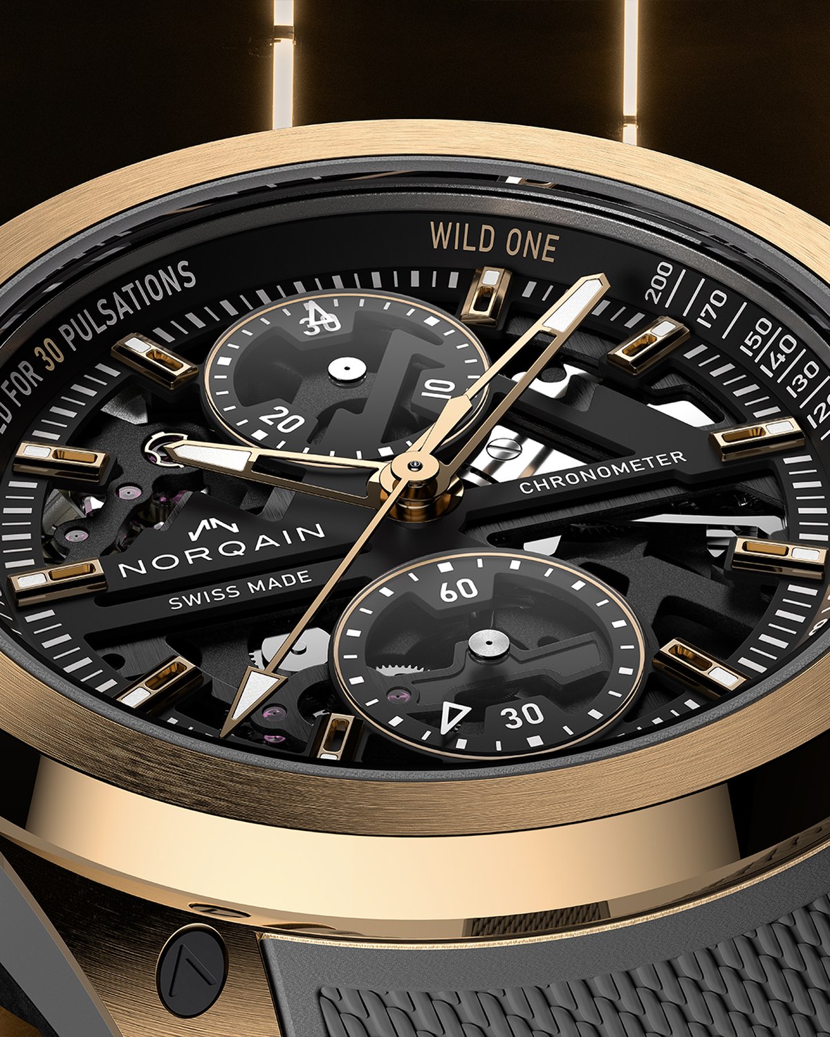 Norqain posouvá hranice sportovních chronografů na novou úroveň. Model Wild ONE Skeleton Chrono není jen evolucí, ale radikálním krokem vpřed – hodinkami navrženými pro výkon, odolnost a absolutní svobodu pohybu. Už na první pohled zaujme otevřenou architekturou, která nechává mechaniku doslova dýchat.