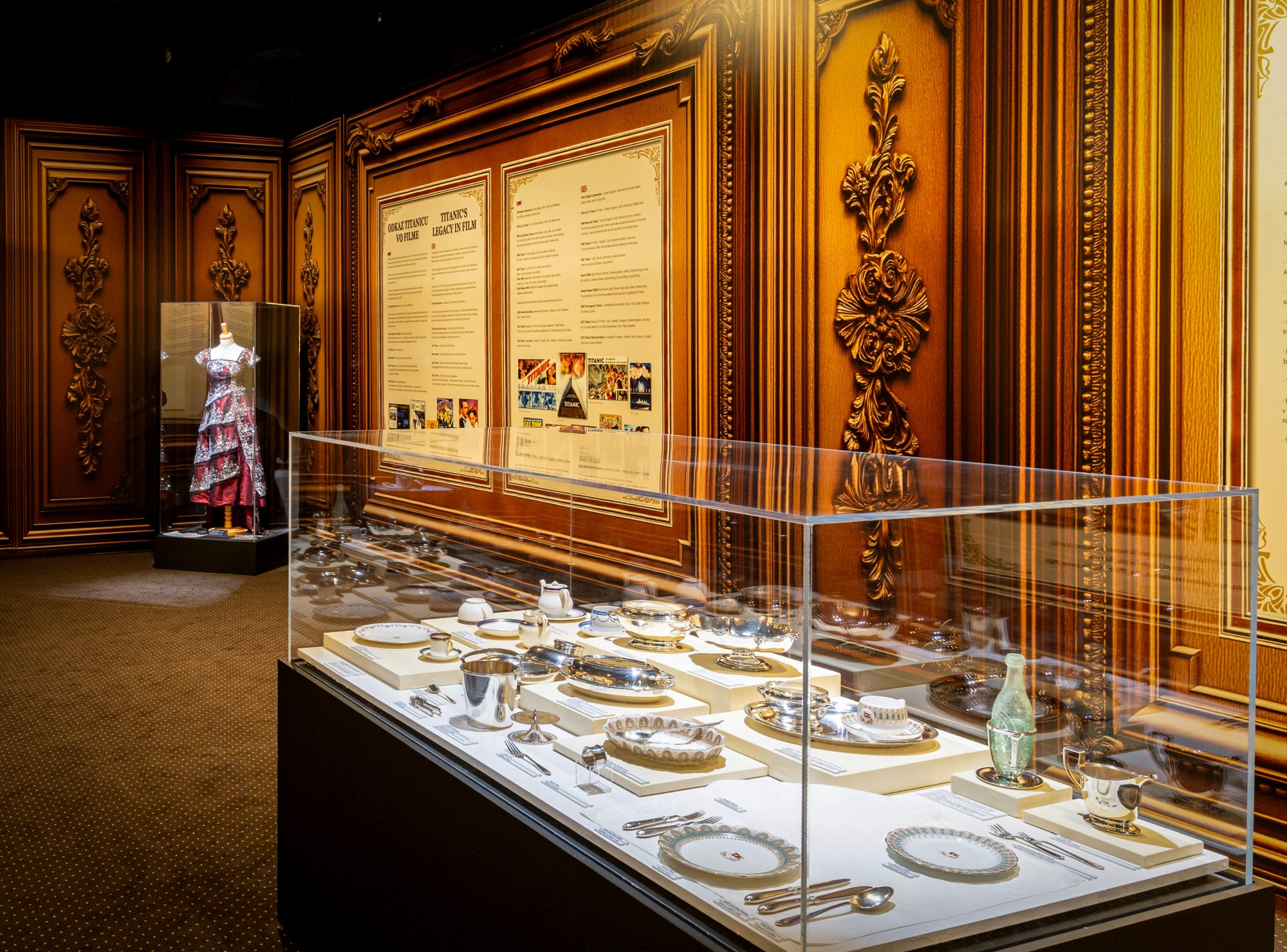 Prostor je doplněn věrnými rekonstrukcemi interiérů lodi, včetně kajut první a třetí třídy, francouzské kavárny, strojovny i slavné přídě známé z filmového zpracování příběhu.
